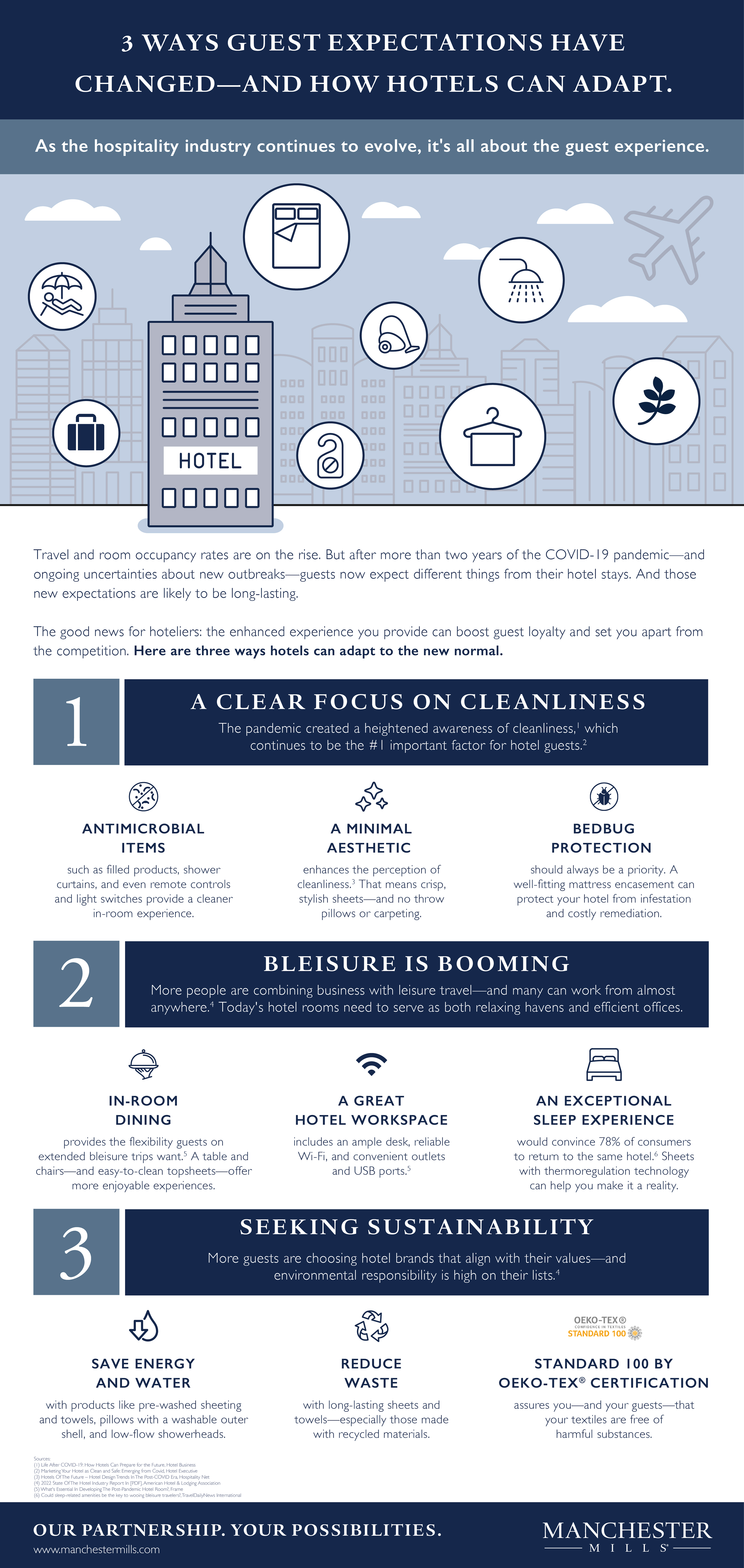 The enhanced experience a hotel provides can boost guest loyalty and set your property apart from the competition. Download our infographic on three ways hotels can adapt to the changing guest expectations and the new normal.